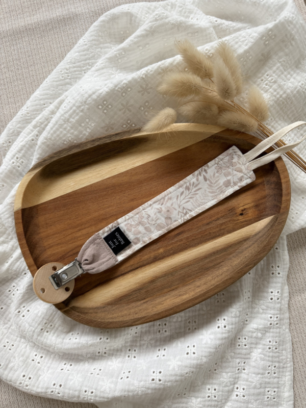 Dit mooie speenkoord bestaat uit 2 verschillende stoffen, aan de ene kant heb je een printje aan de andere kant de effen stof met naam. Hierdoor heb je een uniek speenkoord!